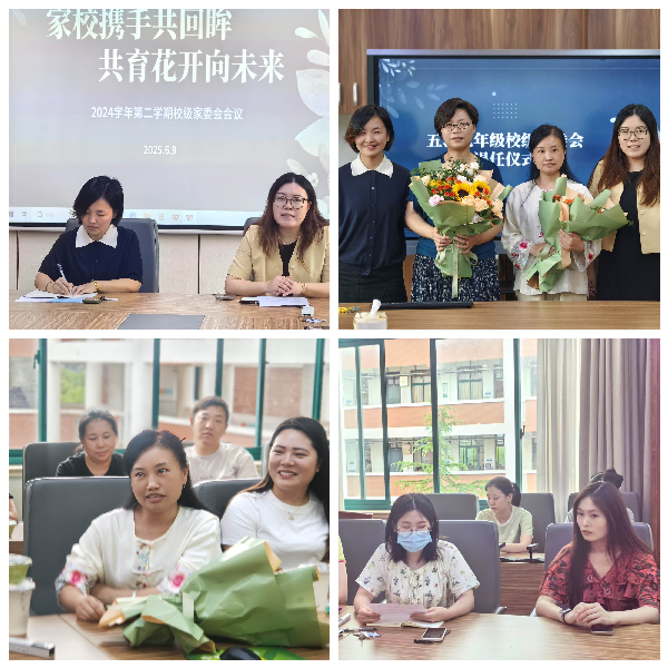 初夏的连绵细雨挡不住家校同频共振的节奏,带着期许、带着信任,聚家校之力,共赴一场夏日的约定。6月9日,阳光·胡桥联合学校召开了以“家校携手共回眸 共育花开向未来”为主题的期末校级家委会会议。出席本次会议的有阳光·胡桥联合学校校长侯敏、副校长周毓洁、政教主任金叶丹和全体校级家委会委员。会议由政教副主任季睿婕主持。