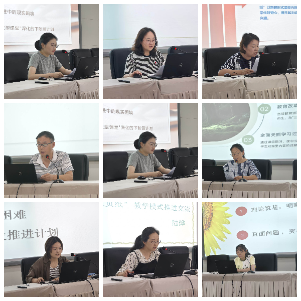 初中物理王考红老师从课堂实践、评价体系等方面总结经验,分析困难并提出突破方法。初中化学组王卫东老师有阶段地推进设计,优化教材配套精编并用于实践,收获阶段性成果。 政史地组陆慧英老师阐述推进背景与要求,分享优化作业设计等收获,剖析学生与教师面临的困难并制定计划。综合教研组谢华芳老师汇报课题申请等成果,总结实施策略,展望下一阶段工作。