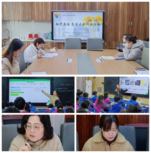 为精准把握八年级新教材教学方向,破解授课难题,促进教师教学能力提升,12月15日下午,阳光·胡桥联合学校开展八年级新教材授课及评课集团教研组研讨活动,集团成员校各校教师齐聚一堂,以课为媒,共探教学新思路,推动生长课堂的教学要求与课堂深度融合。本次活动由中学英语教研组长张蕾老师主持。